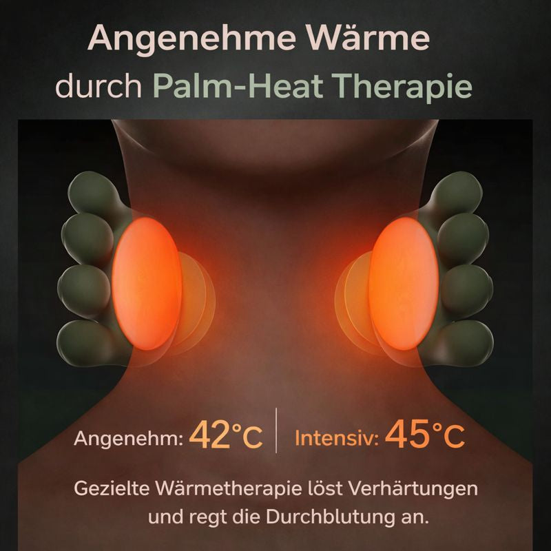 Die integrierte Wärmetherapie arbeitet im Bereich von 40–45 °C. Das ist angenehm warm, fördert die Durchblutung und ist gleichzeitig sicher für die Haut.